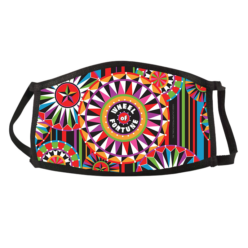 Share your fandom for Wheel of Fortune in this vivid, multi-colored face mask designed by renowned costume and fashion designer Bob Mackie.