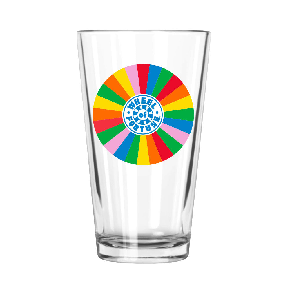 Cheers to the puzzle lover's favorite gameshow with this personalized pint glass! One side of this customized glass features your very own name. The other side features the Wheel of Fortune's colorful wheel logo.